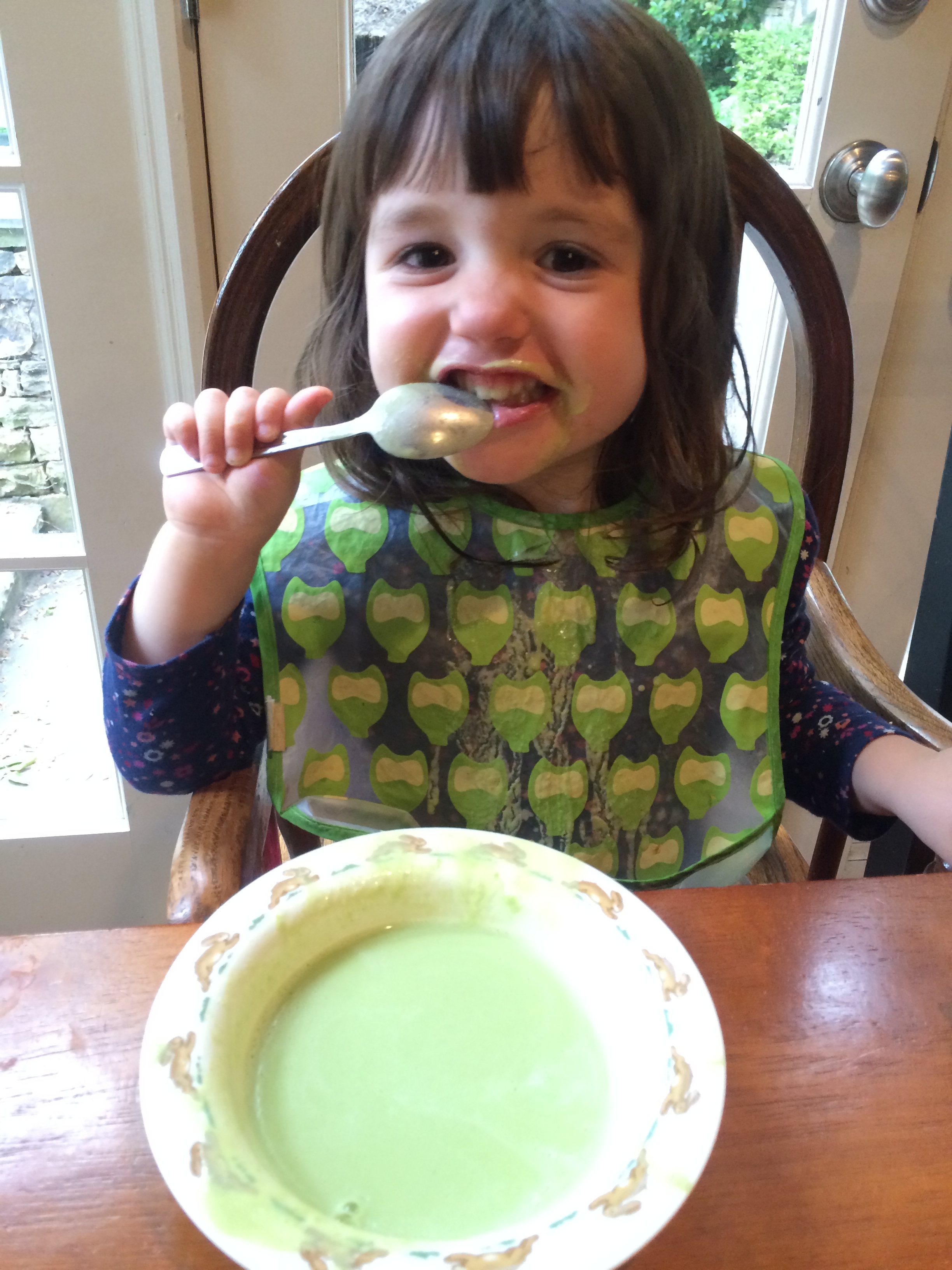 I have made this recipe probably more than 50 times, and I have yet to find anyone who doesn’t like it. Plus, it’s so simple you can have it on the table in minutes. It comes from my Aunt Karen, who is a healthy and imaginative cook, (and was making kale salad before I’d seen it anywhere else). The cashews give it a rich, creamy flavor, and the peas make the soup taste nice and fresh. Perfect for springtime. I made it for dinner tonight!